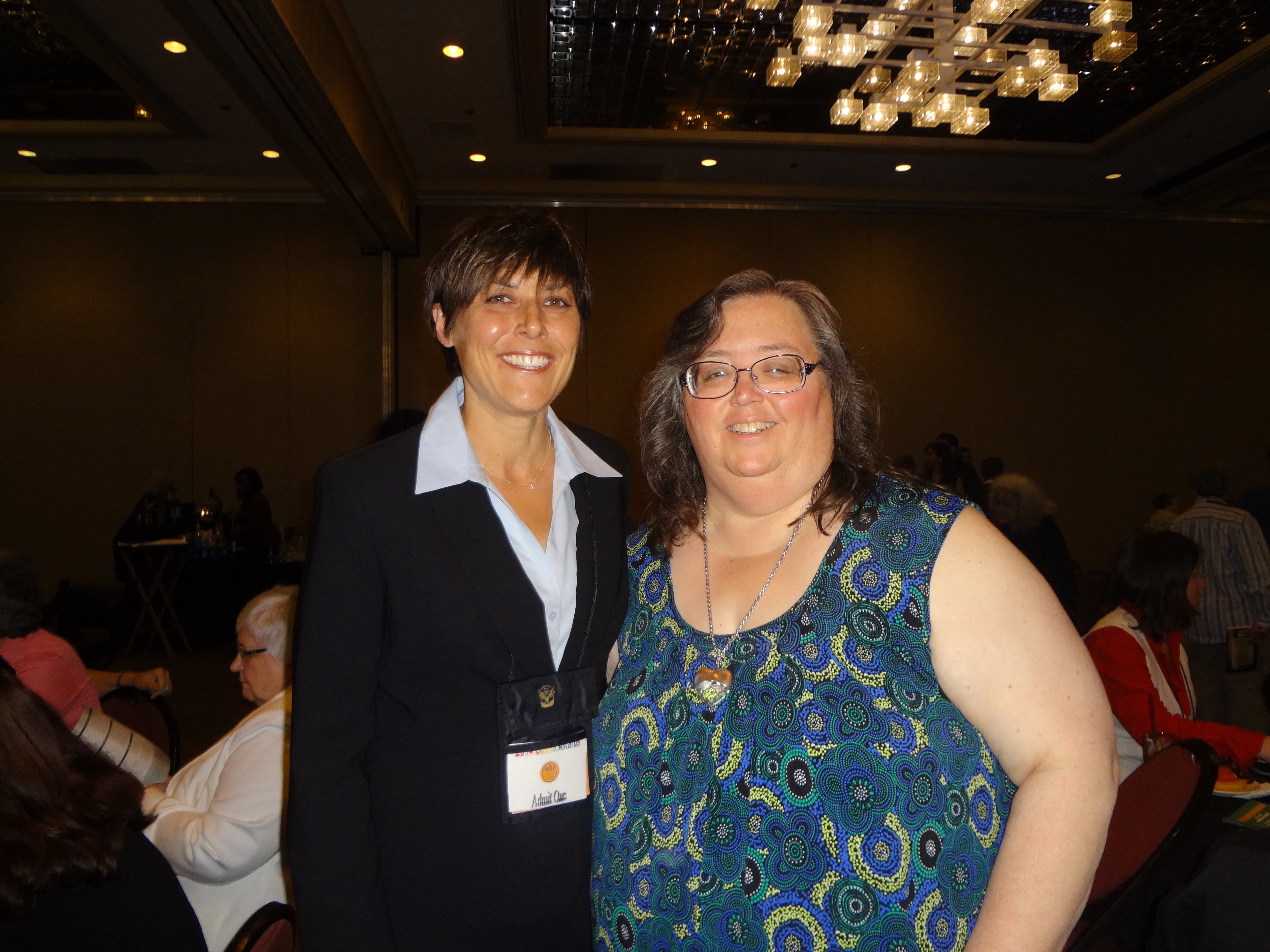 I’ll leave you with one more photo, if WordPress will let me. This is a photo of Sandra and I together the night she won the Ann Bannon Popular Choice Award, for the most popular book of the year, as selected by the readers, not the judges, at the GCLS Goldie Awards in 2014. I want to thank Sandra for her friendship and send my deep condolences to her wife, Cheryl and her sister, Lauri, and all her family and friends. She was a shining star and will continue to be a presence in the world of lesbian literature and literature as a whole.